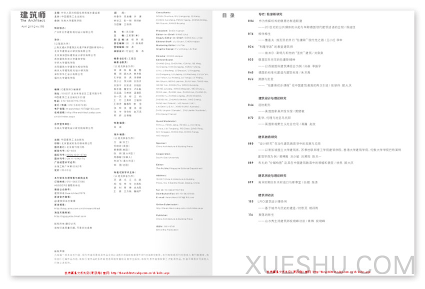 《建筑师》杂志为国内大型综合建筑理论刊物,将以全新的面貌出现在读者面前,其版式设计、装帧及印刷均将达到国内,但其所一向秉承的办刊宗旨并未改变。